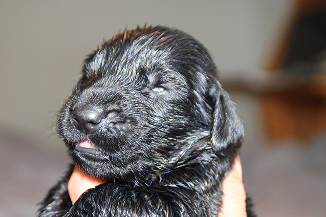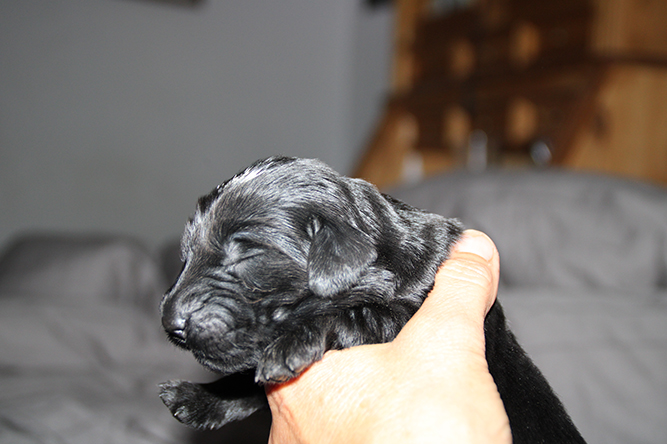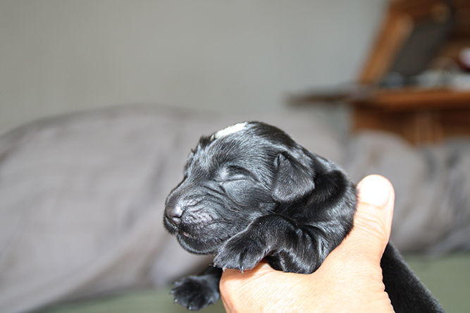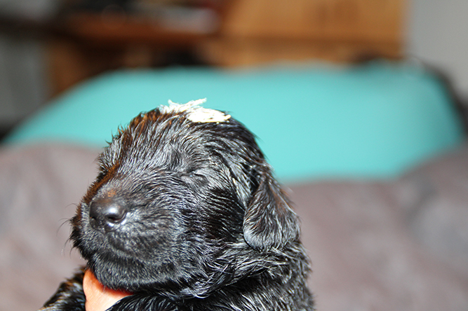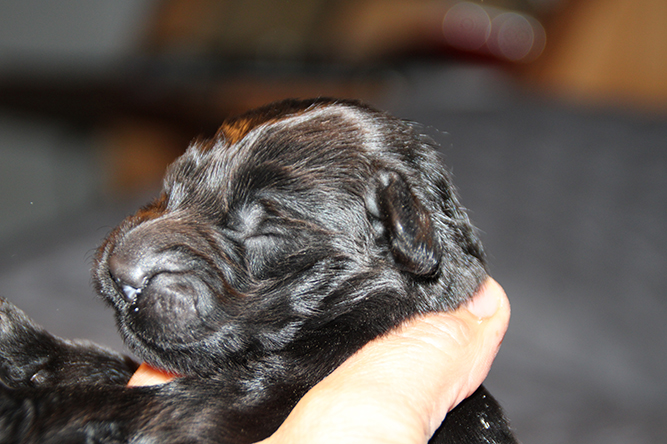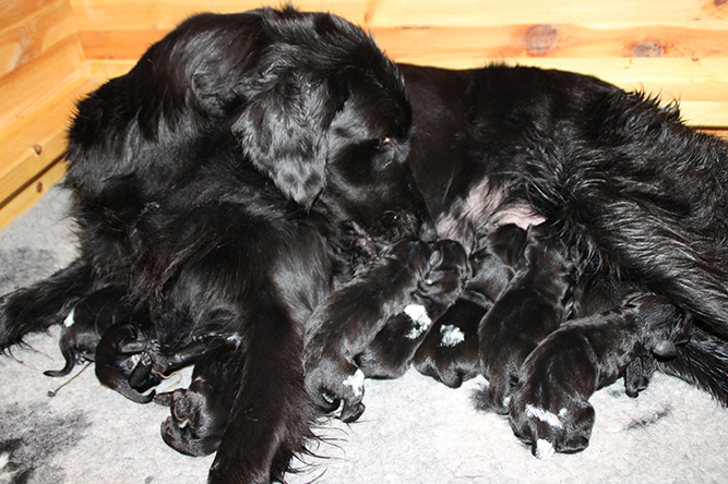 30.09.25. I dag er de skjønne tre døgn gamle. De vokser og trives.Det er mer fart i de når de våkner å skal ha melk. Hvis ikke Kimmie er kjapp til å legge seg så yrer det rundt henne. Noe hun tar med stor ro. Hun vet akkurat hvor hver og en er å legger seg ned der det er ledig plass å aker seg inntil valpene sine. Vi var ute å gikk en litt lenger tur også i går kveld. Kimmie stor kosa seg og var også veldig fornøyd når vi kom inn igjen. :-) Da ble hver å en vasket godt . Her er jente merket rygg og gutt merket halen