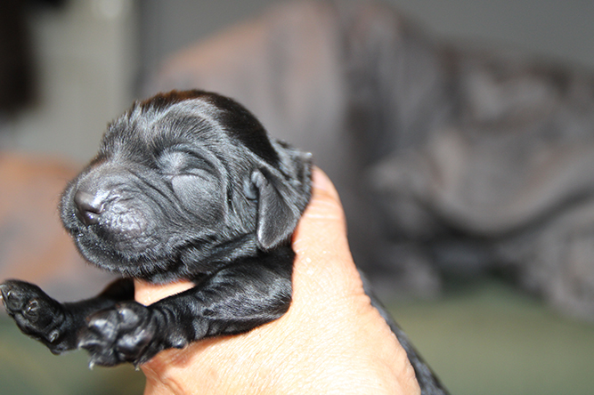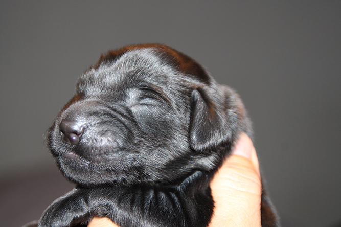 04.10.25. I dag er de skjønne små blitt en uke gamle. Klo klippen ble gjort i går kveld og det gikk fint . Selv om de ikke akkurat sitter rolig når jeg prøver å klippe klørne :-) I dag er det mark kur på menyen. Den må de ha 4 ganger før de skal flytte herifra . Smaker aldri så godt men lurer det i de. Kimmie sin temperatur er mye bedre. Hun har litt mindre melk foreløpig etter infeksjonen så vi hjelper til med flaske hver 3 - 4 time så alle får i seg nok. De koser seg med den ekstra melken å er så fornøyde :-)Nå klokken 03.30 er stormen på full fart her ute. Så turte ikke vente med å sende ut valpedagboken i tilfelle nett og strøm forsvinner etter hvert her .Det uler i huset men hundene tar det helt med ro. Her er Gutt merket nakken og jente merket rygg.