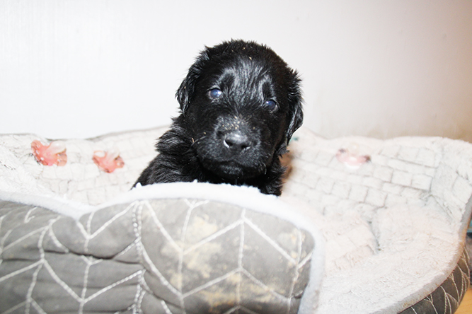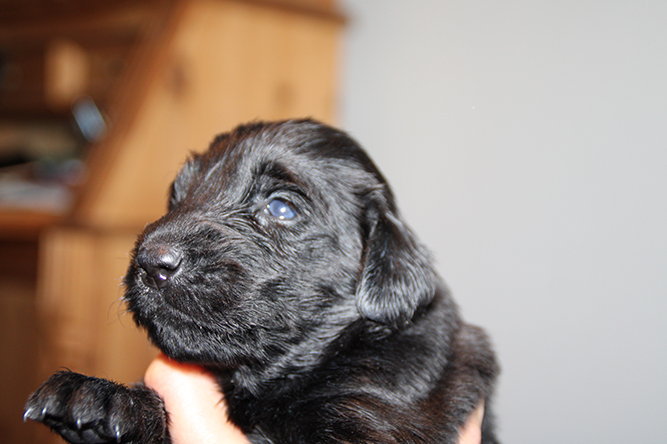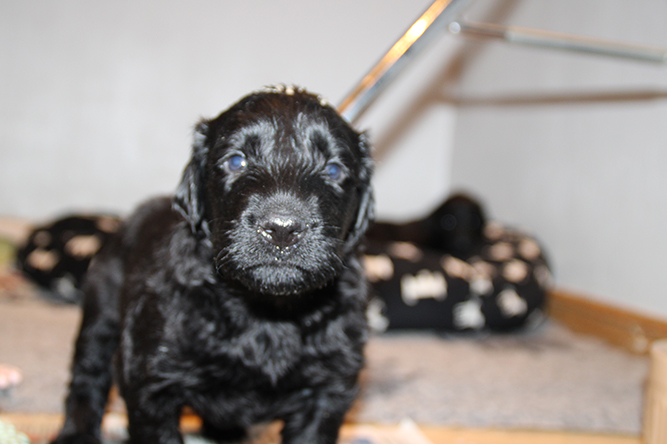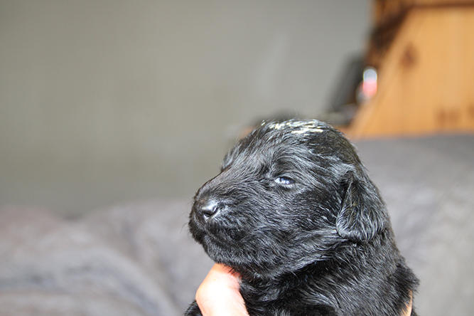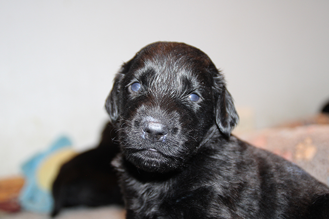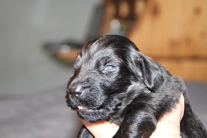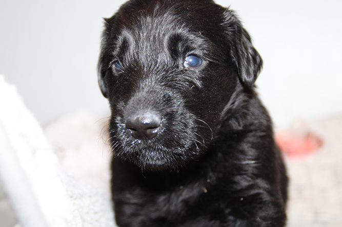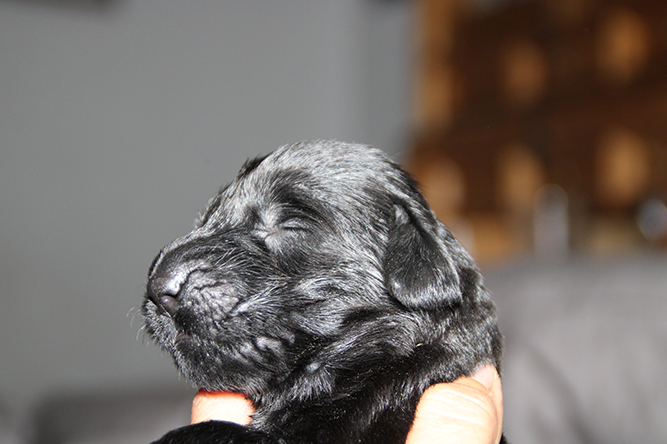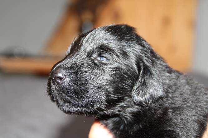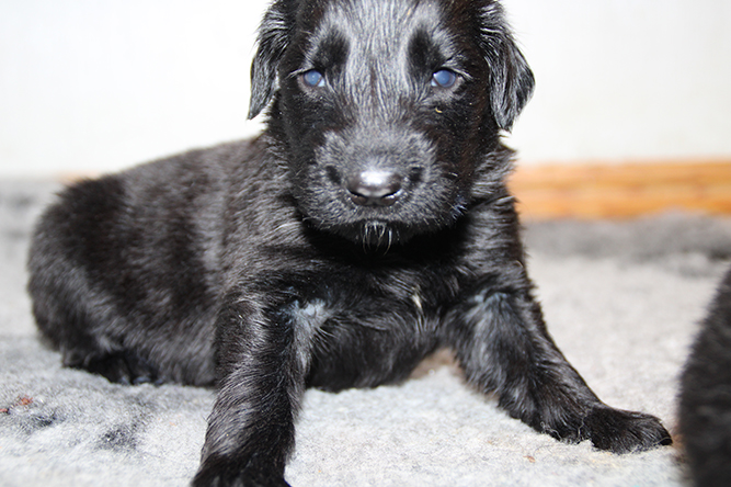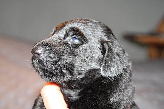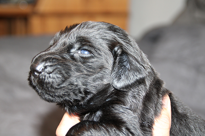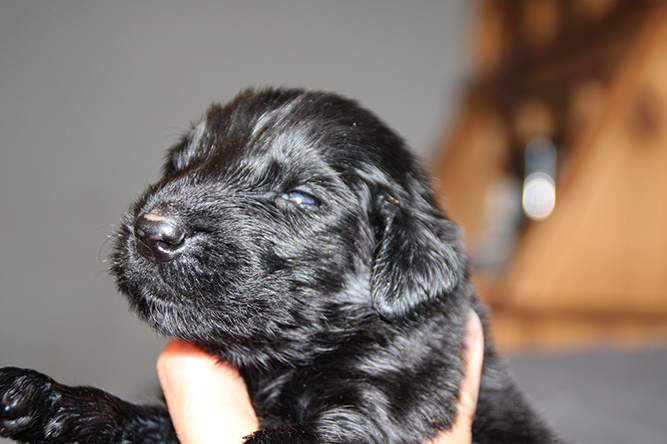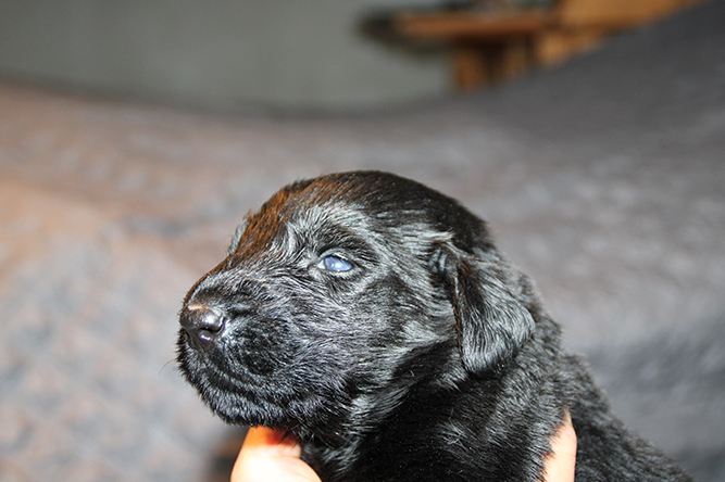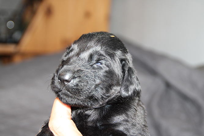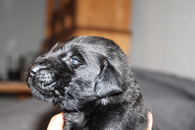 06.10.25.Nå begynner den neste spennende tiden her. Øyen sprekkene begynner å bli mer å mer markerte å de åpner øynene i løpet av få dager. I ngen har begynt å glippe noe med øynene enda men man ser å tydelig at det er hakket før nå. De ser jo ikke så mye de første dagene men det er så fantastisk når de begynner å glippe mot den store verden :-) I dag er det ny kontroll på veterinær klinikken. Men i dag lar vi valpene bli igjen hjemme. Jeanette hjelper til så e er i trygge hender :-) Blir ikke lange tiden borte. Her er gutt høyrebak og gutt venstre bak