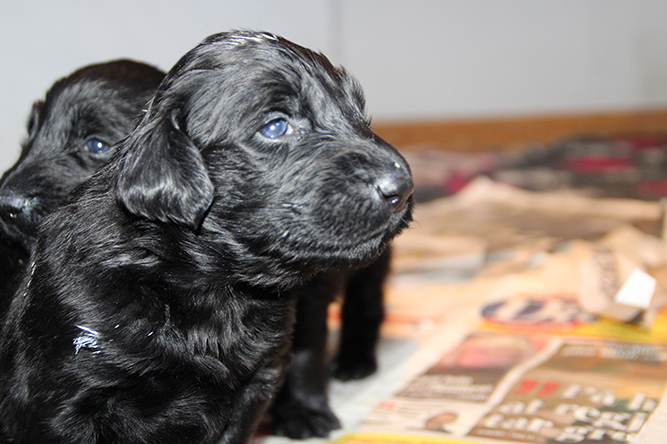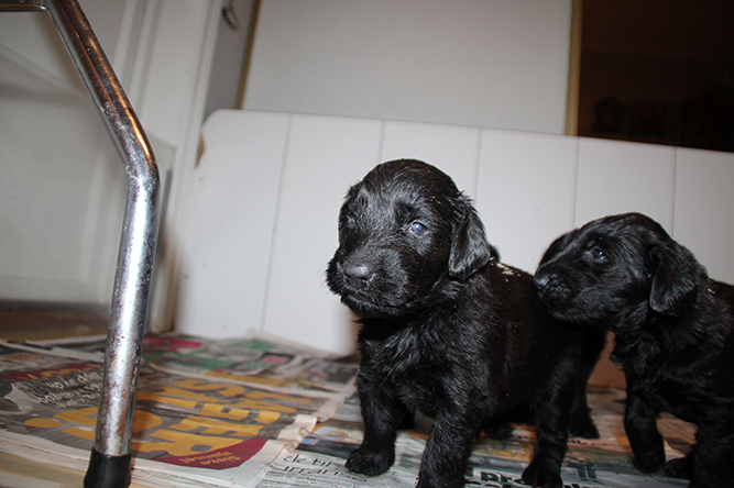 24.10.25. I går skjedde det masse her. 3 turer ut etter mat og masse bæsj og tiss ute. Deilig for meg :-) De synes det var en stoooor verden utenfor, besøk i går ettermiddag var også populært. Da tok vi en tur ut i stua. I dag sprut regner det her og det er meldt slik i hele dag så det spørs om vi tar turen ut. Det er masse besøk gjennom helgen å alle må passe på at de kommer til den tiden som er satt opp. Det er tett og valpene må få sove litt mellom besøkene. Husk at de er små enda å sovner fort også når de har vært våkne en stund. Derfor også like viktig å komme når vi har avtalt så de ikke sover seg gjennom hele besøket :-) VI TRENGER AVISER så ta med dere som har noen Spør naboen ,jobb o.sv om noen har aviser :-) Her er GHB og GVB