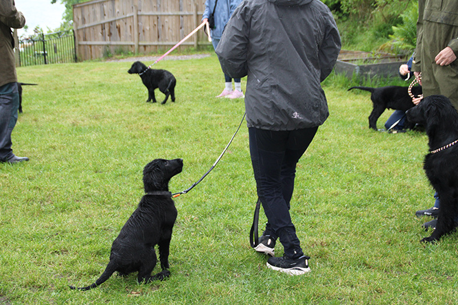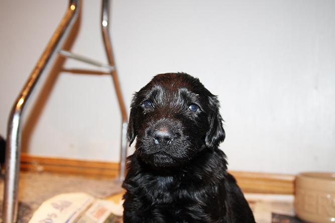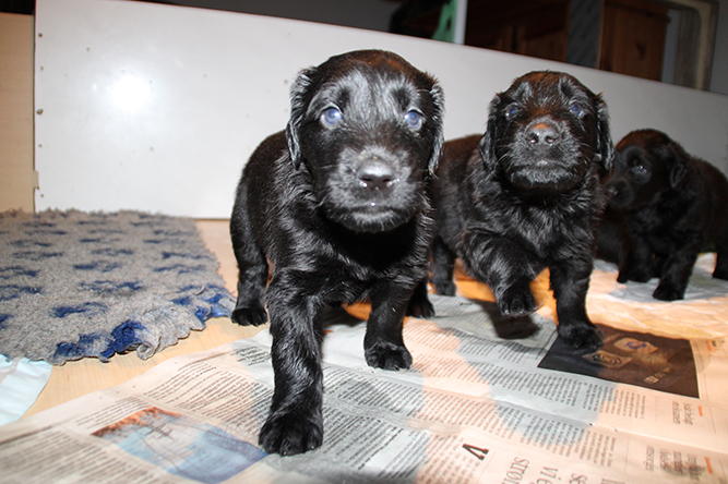 14.10.25. Utviklingen går i 100 her. I dag må vi åpne mer plass . De er blitt sykt flinke til å gå ut på avisene å gjøre i fra seg. I dag skal de få "gressplen" ved døren .jeg skjønner faktisk ikke hvordan folk klarer å ha valper i en liten valpekasse frem til 3 ukers alder. For her går det unna. De våkner å går helt ned i andre enden av innhegningen sin . Å de vokser så det knaker så det blir jo fort trangt. Hørselen har nå åpnet seg å de hører veldig godt når vi kommer inn i rommet. Da blir det liv :-)Her er gutt halen og gutt hode