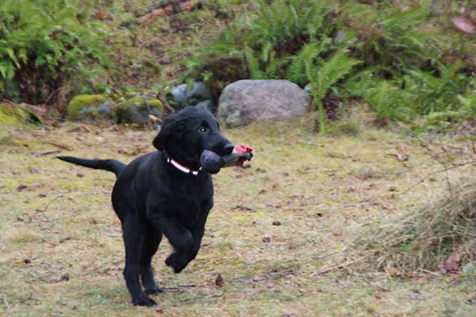 16.10.25. Den første spede leken har begynt . Så i går fikk de masse leker å holde på å sutte på å bite i også . Det var spennende det. Katten Katia tok seg en undersøkelse runde oppi valpekassen også i går. Kimmie er heldigvis en veldig snill hund så hun stoler helt på husets katter :-)Saga var en kjapp tur innom på besøk i går også. Hun er nå 45 dager på vei å er god å rund. Hun fikk være med litt jakt trening i går. Å er kjempe sprek . Men man ser jo at magen begynner å hemme henne mer :-) Her er jente rumpe og gutt rumpe