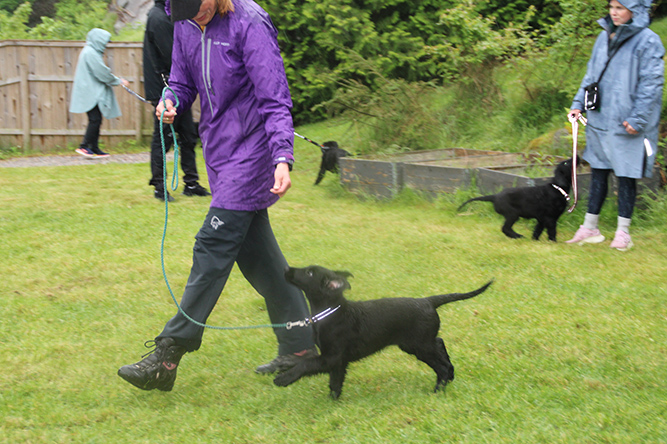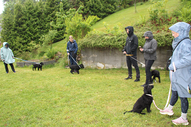 15.10.25.Trolla fikk mye større plass i går å det var populært :-) Utrolig hvor flinke de alt er blitt til å gå ut på avisene å helst helt i den andre enden av der de sover for å gjøre i fra seg. De har fått en liten gress plen ved døren også. Så vi er i gang med å trene rensligheten med å få ting ute og bort fra der man bor allerede :-) Blir de liggende for tett å i sin egen tiss å bæsj så er det jo ikke rart mange sliter med å få de rene når de får valp hjem ved 8 ukers alder. Da blir det en normal tilstand. De vil helst vekk fra der de har gjort i fra seg :-)Grøten går ned på høykant også. Nå får de 30 ml grøt 4 ganger pr dag. De vokser så det knaker her . Her er Gutt høyre bak og gutt venstre bak