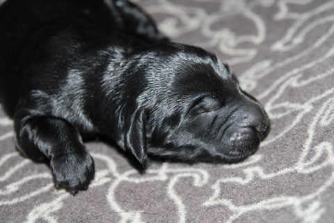 01.04.20. I dag er de skjønne små 3 døgn gamle. Lykke koser seg i mamma rollen. I går var hun med på den første litt lengre turen for å strekke litt mer på bena. det synes hun var godt. Men gjett om det vaar full fart til valpene når hun kom inn igjen :-) Hønemor :-) Her er jente merket halen og gutt merket halen.