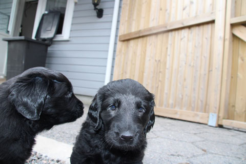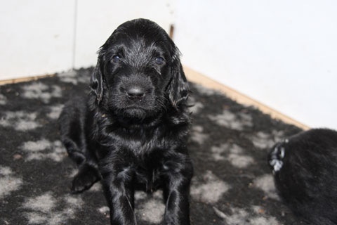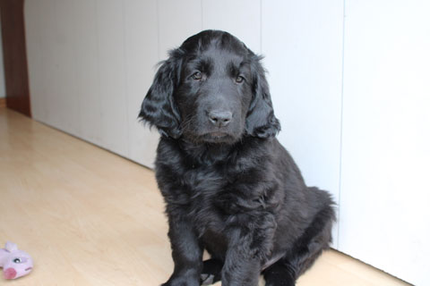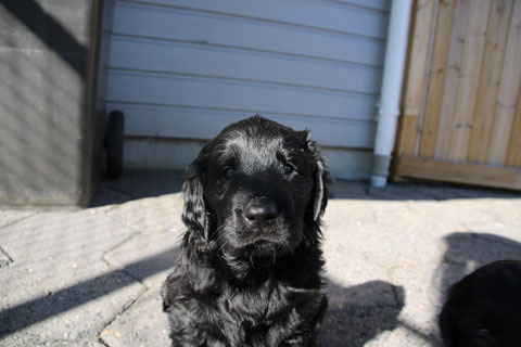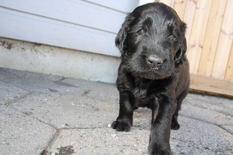 19.05.20. Veterinær sjekken gikk kjempe fint alle friske og raske og Meget god som helhets vurdering av kullet :-) Deilig. Anne Berit som eier pappaen var her også i går kveld å tok en kikk på avkommene sine :-) Anne Berit er Flat dommer og hun var meget fornøyd med kullet. Utrolige sterke og pene valper synes hun . Så vi er kjempe fornøyde her :-) Her er Teodor og Akira