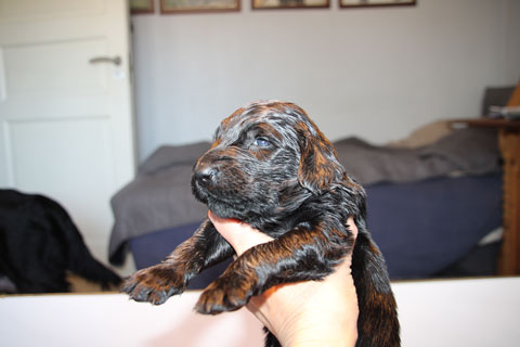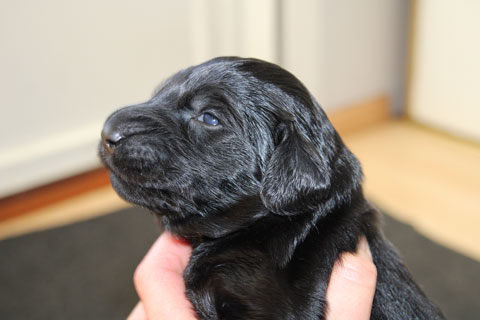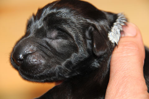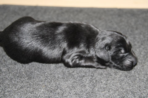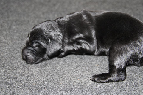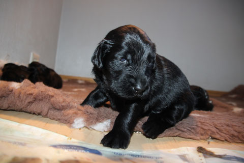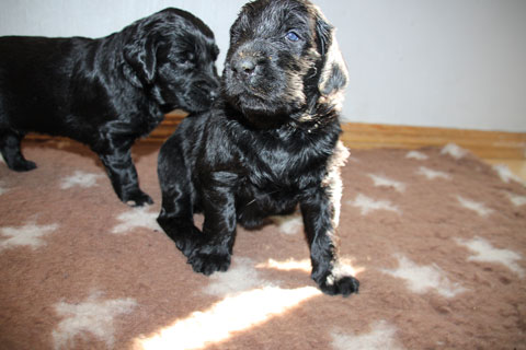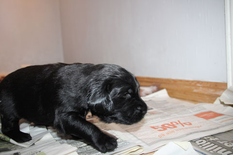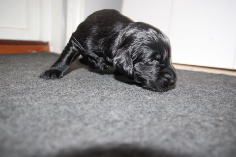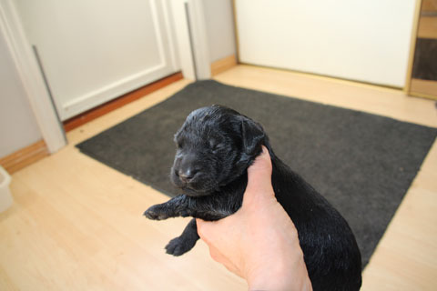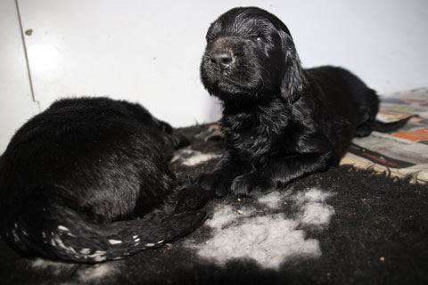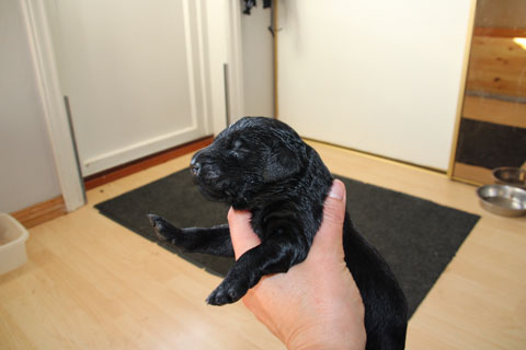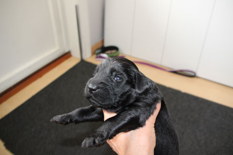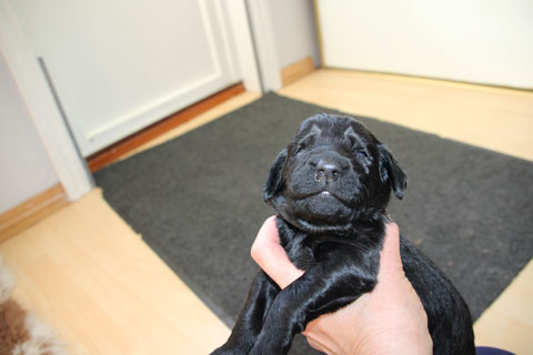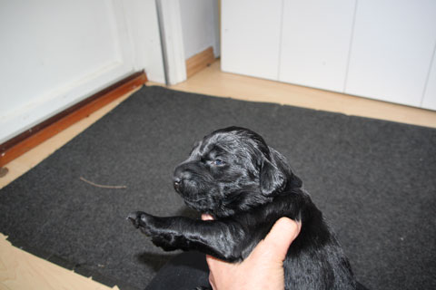 12.04.20 . I dag er de skjønne trolla våres blitt 2 uker gamle. Ny runde med klo klipp er på menyen i dag . Baby grøt er kjempe godt å de stor koser seg. I går kveld åpnet vi valpekassen så de fikk større plass. det var populært :-) Nå er det å lære å vakle seg over på avisene for å tisse og bæsje. I starten drar de over kroppen frem på avisen for så å tisse. men bakparten er jo fremdeles på teppet :-) men dette lærer de fort :-) Her er jente nakken og gutt nakken.