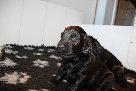 10.04.20. Nå må vi snart åpne valpekassen her. De er blitt så store å fine :-) Vi får prøve å holde igjen et par dager til frem til de er 14 dager gamle. Hørselen er nå i ferd med å åpne seg . Det skjer så mye nå fra dag til dag . det er så gøy :-)De kniper fremdeles når det blitzer når jeg tar bilder . Så ikke lett å få tatt fine bilder akkurat nå .Her er Guttvenstre bak og gutt høyre bak