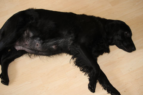 27.03.20.Lykke har flyttet inn på sitt valperom nå . Hun har slått seg godt til ro. Hun er stor og tung men er allikevel gladelig med på turer om dagen . Det sparker godt magen hennes nå . Magen har falt ned så det nærmer seg. men tenker at det fort tar noen dager til før hun føder . Hun er på dag 62 etter første parring . men det tror jeg var litt tidlig . Hun måler nå 80 rundt livet på det tynneste og 87 cm på det tykkeste :-)