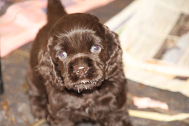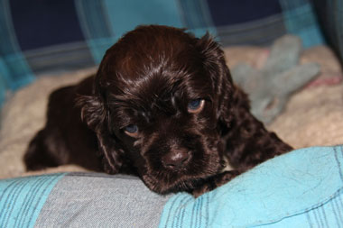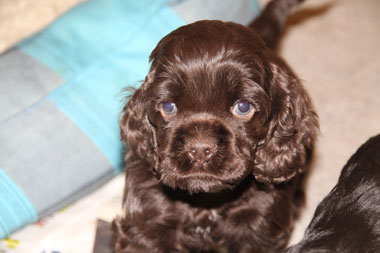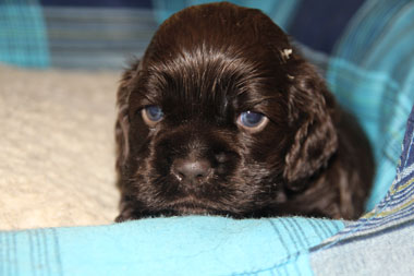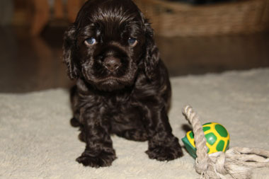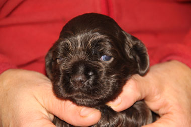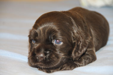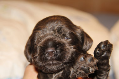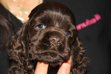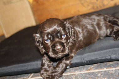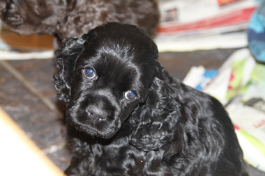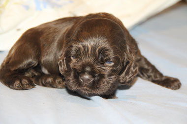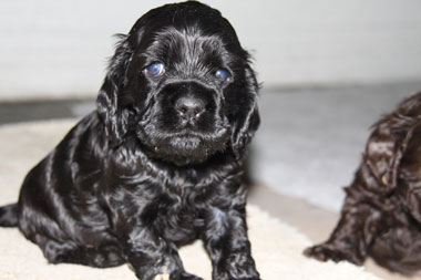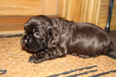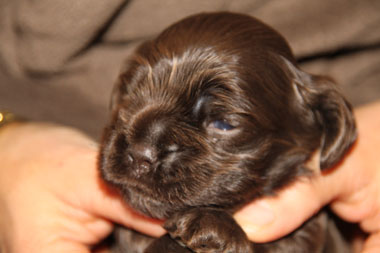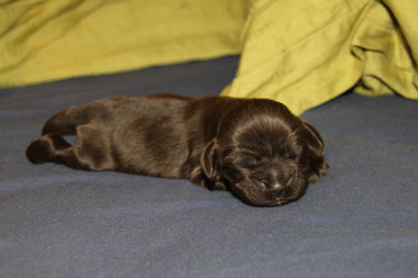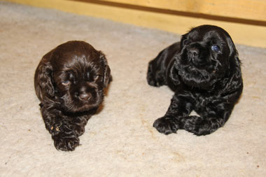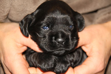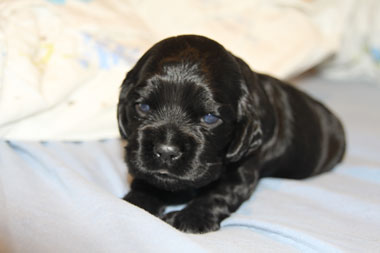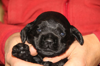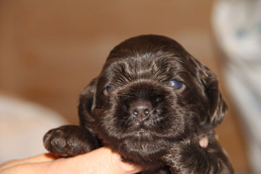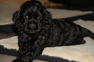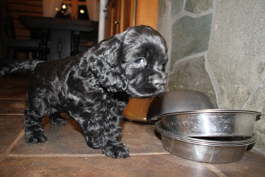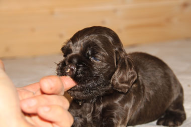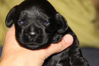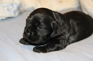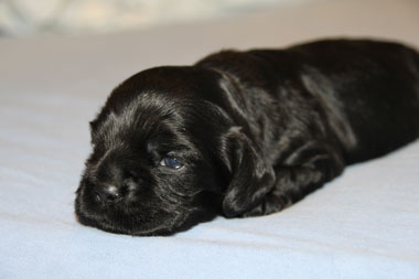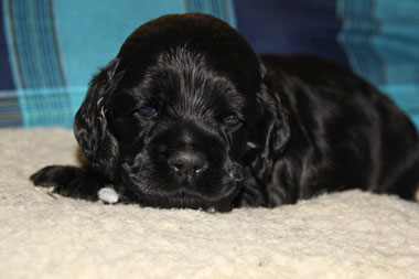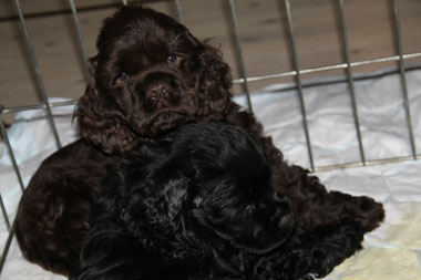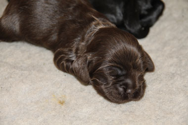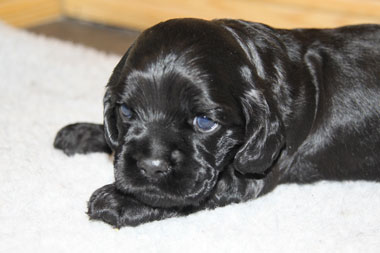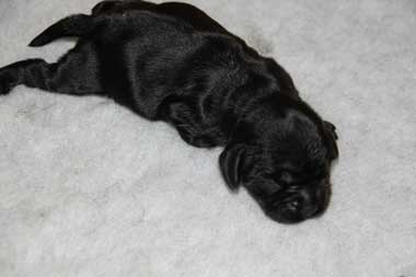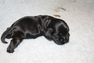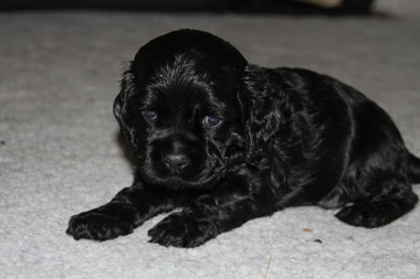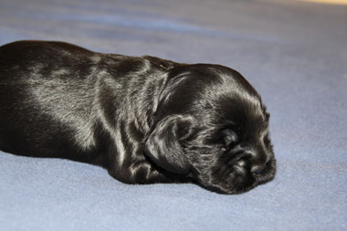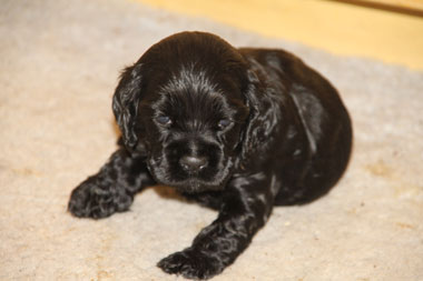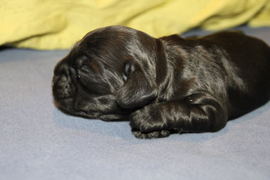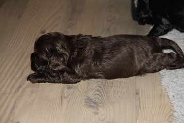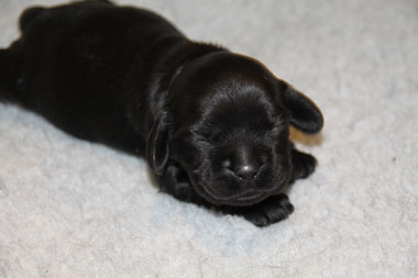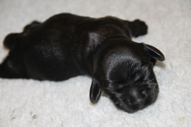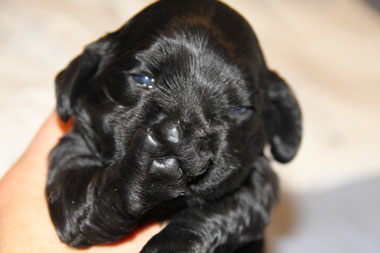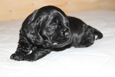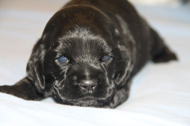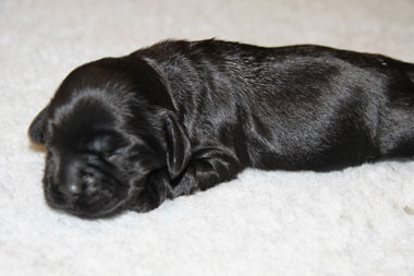 27.10.10. Endelig har første mann åpnet øynene. Sort jente titter på veien med et undrene blikk. Hun må vi forøvrig passe litt på nå. Hun spiser alt for mye så jeg nesten er redd for at hun blir for tykk. Hun skal jo lære å gå så det er viktig at ikke hun blir alt for fet :-) Daniel er flinkere her. Han er en nett fin hanne som spiser til han er mett. Han er nå snart på bena rundt i valpekassen. Charmen er en ordentlig hønemor som gjerne ligger med valpene sine hele tiden. Hun må vi nå ta med litt ut slik at lille frøken tykk ikke blir alt for tykk :-)Her er Diva som titter på verden. Så er det Marley som koser seg.