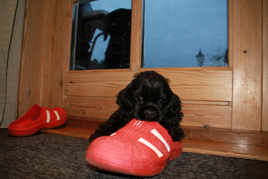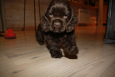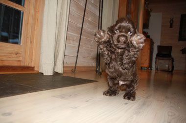 11.12.10. I går flyttet Diva og det ble bare Marley igjen i stua her. Godt vi har Mie. Hun leker med han og er søster. I dag skal Marley også flytte. Det blir ganske så tomt å rart uten de to charm trolla. Blir spennende å se hva Charmen synes om at begge barna henne er flyttet ut av huset. Men du så flotte familier vi har fått til bortskjemtende våres. :-) Nå vil de få all oppmerksomheten selv. Her er Marley i farta i går ettermiddag. Tenk det er siste dagen jeg skriver i valpedagboken. Det blir også litt rart etter å ha fulgt disse to god klumpene nå i 8 uker. De kommer heldigvis på besøk både til klipping og til trening. Valpetreffet blir i januar og gjett om vi gleder oss til å ha de samlet igjen.