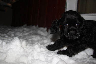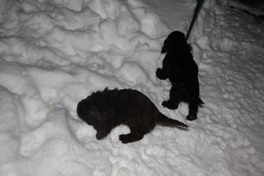 01.12.10. Her er knoll og tott ute på terrassen å tisser i går kveld. Det er jo ganske så kaldt så de får bare korte turer ut. Men gjett om snø er gøy. Det smakes og smattes. Stort rom er blitt satt veldig stor pris på. Når Nala flytter inn for å få valpene sine så tror jeg at små trolla bare blir i stua. Det er så utrolig enkelt med 2 små amrik troll. Og veldig koselig at de er sammen med meg hele tiden.Bilde nr 2 er Marley i farta når han kommer inn. Da er det å løpe litt rundt å få varmen igjen. Bilde nr 3 er Diva som koser seg i snøen :-)