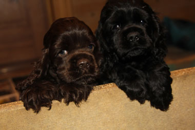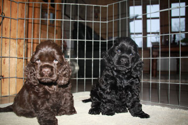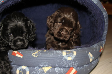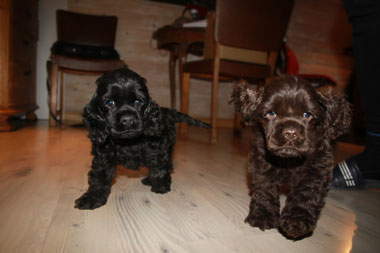 06.11.10.I dag er trolla blitt 3 uker gamle. Så i dag er det dags for ny mark kur og klo klipp. Mat skal de også få smake igjen. Det falt nemlig veldig i smak i går kveld. Vi flyttet valpene inn i større valpe kasse også i går. Nå begynte de å trenge mer plass. I natt har de ligget på soverommet sammen med oss. Så er det ned i 1 etg igjen på morgenen. Hyggelig for Kjell og meg å ligge i samme seng igjen etter 3 uker på valpe rommet for Anita :-) Og med to stykker så er de jo veldig lette å ta med seg rundt i huset der man er. De koser seg masse foran peisen om kvelden når vi ser på TV. Charmen setter også stor pris på litt selskap. Oldemor Zeline var innom på besøk sammen med mamma og pappa i går. Hun ville jo så klart rett oppi til valpene, men den gang ei. Charmen sa klart i fra at hun kunne sitte ved siden av valpekassen å titte, men oppi skulle hun ikke. Gjett om Zeline fortet seg oppi for å kose med oldebarna så fort Charmen gikk ut i stua igjen :-) Godt hun er hos mamma og pappa akkurat ,nå ellers så hadde vi hatt 2 mødre til de to trolla. Her er Marley & Diva.
