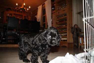 07.12.10. I dag har vi vært hos veterinæren. Bil turen på ca 4 mil hver vei gikk kjempe fint.Sov begge veier :-) Tisset ute når vi kom frem og ute når vi kom tilbake. Flinke barn Så nå har vi fått god trening på dette også. Var veldig fornøyd etter sjekken hos veterinæren. Begge er friske og fine :-) Alltid litt spennende med hjerte og slike ting man ikke så lett får sjekket selv. Men alt var heldigvis i skjønneste orden med begge to.Vi fikk meget godt på helhetsvuderingen. Så nå er det spennende om de reagerer på vaksinen. Her er Knoll og tott i leke grinden i stua. med denne så får vi trenet på å ligge inngjerdet. Det er greit i forhold til bur som de skal bruke i hvert fall om natten når de flytter.