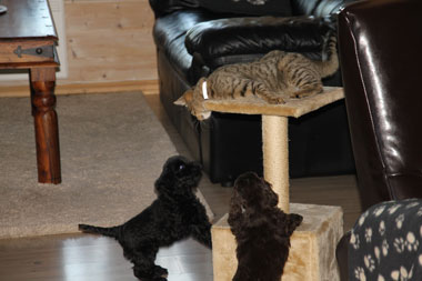 22.11.10. I går var det masse besøk her for trolla. Gjett om de satte stor pris på dette. De turner rundt i stua og Mie elsker å fange dem. Så her går det unna. De er sikre på at alle de voksne hundene er melke biler som kommer med mat til de. Så så fort en kommer i nærheten så kommer de løpende for å sjekke om det er no melk der. Men det er ganske så høyt opp til Flattene. Til trollas store fortvilelse. Her er Marley & Diva.