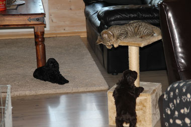 06.12. trolla trives med å bare bo i stua. De sover i lekegrinden om natten slik at de ikke skal ta rotta på noen ledninger eller nisser:-) I morgen skal vi reise til veterinærern for helse sjekk ,vaksinering og chip merking. Gjett om det blir spennende da:-) Her er Marley & Diva.