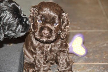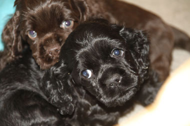 28.10.10.I dag har Daniel også åpnet øynene. Så nå titter begge på verden med noen nydelige blå øyne. Her er Charmen med Diva.Hun blir rundvasket. Så er det Marley& Diva.