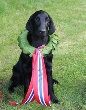 På bildet over er Norah 14mnd.og ble BIG på NKK sin utstilling i Trondheim Vi rakk dessverre ikke BIS finalen på søndagen. Bildet to er fra NRK sin utstilling to helger før hvor hun ble BIS valp 6 - 9 mnd. Norah har begynt å trene så vidt både lydighet og jakt Dette synes hun er kjempe gøy. Så får vi se om hun blir her som Kjells trenings kompis sammen med Giga. Norah viser gode takter allerede og aporterer gladlig fuglevinger :-)Bildet under er hun 7 mnd og 5 1/2 mnd
