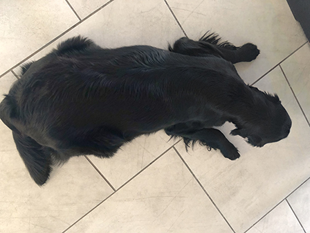 10.02.25. En flott søndag med masse kos og lek i stua med besøk gjennom dagen :-) De sov godt i går kveld kan jeg love :-) I går var Kjell på utstilling igjen og det ble igjen utrolig flotte resultater på Av-Zan-Iaz hundene. Det aller mest gøye var jo at lille Reale Leah var på sin første utstilling å gikk hele veien fra å vinne klassen sin bli best valp 4-6 mnd i rasen samt at hun slo til å ble Best in Show valp 4- 6 mnd over alle retrieverne :-) Ecco vant også champion klassen og ble beste hann hund og BIM :-) Har lagt ut alle resultatene fra helgen under resultater for de som har lyst å se :-) I dag er -4 grader å vi løper ut å gjør i fra seg for så å forte oss inn igjen for å leke inne. De synes det er surt å kaldt merker jeg . Her er jente hale /Luna Nova og jente høyrebak /Ronja