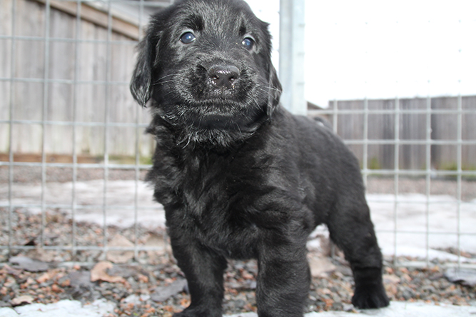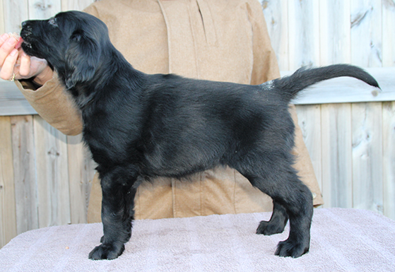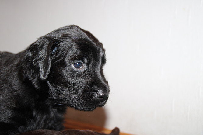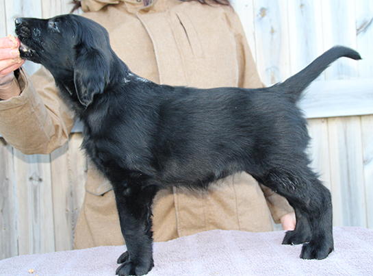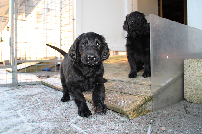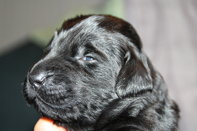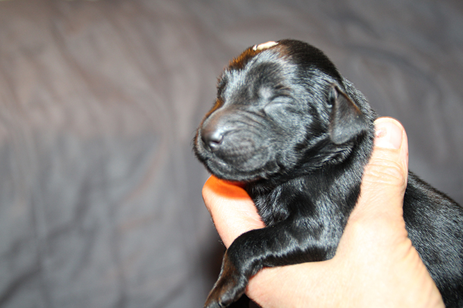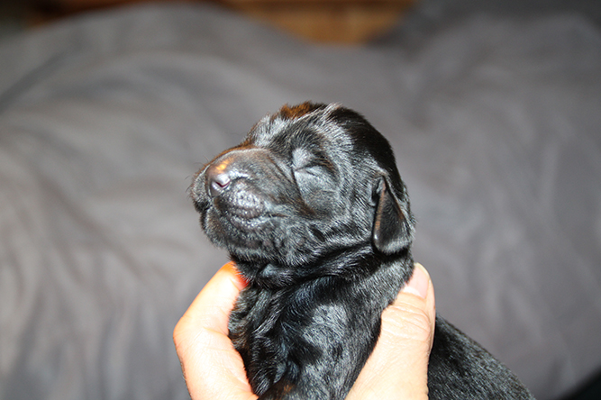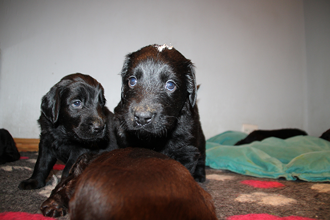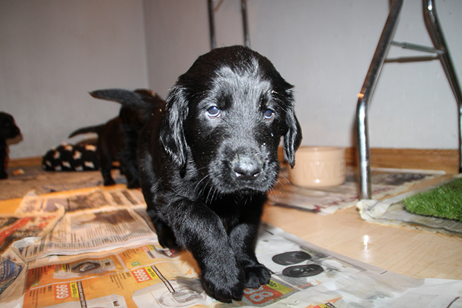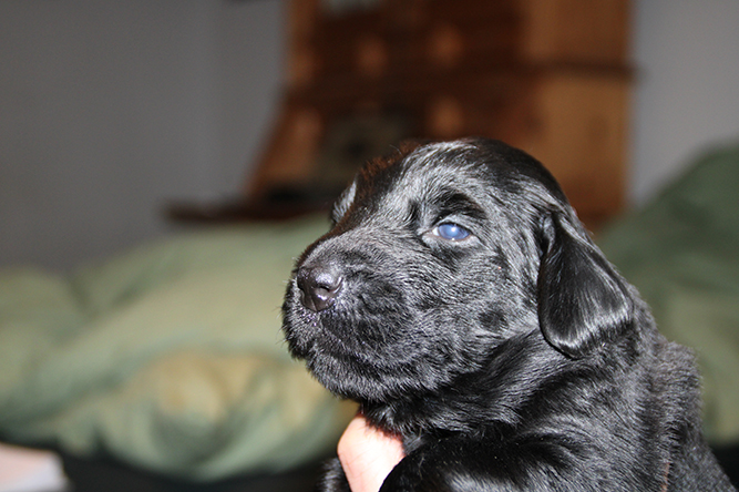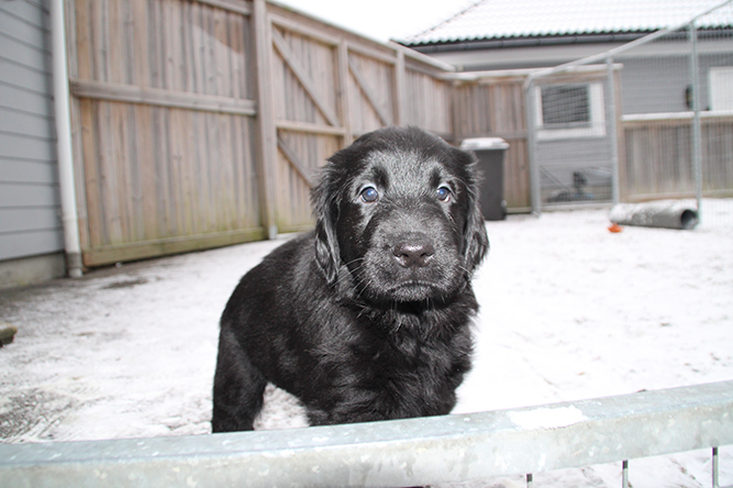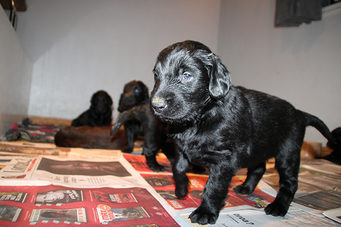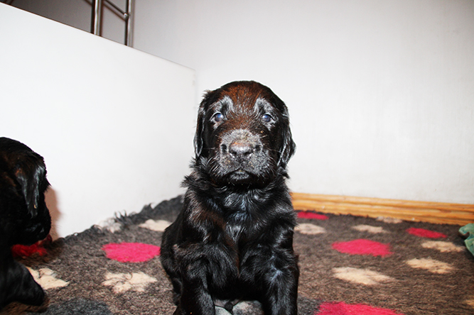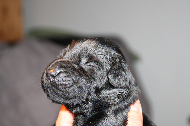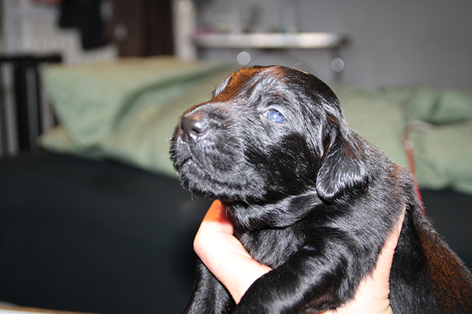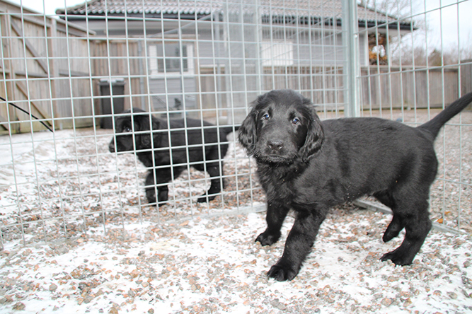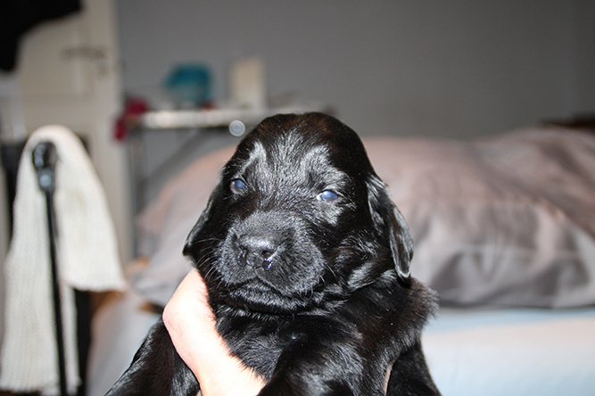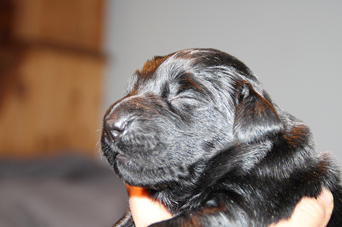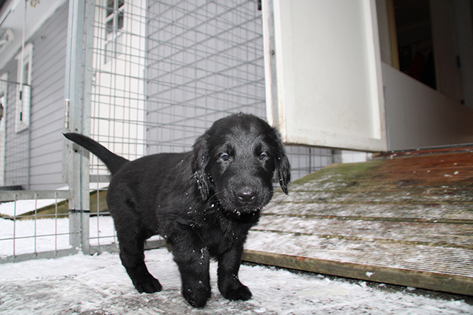 30.01.25. I går mistet vi Lava. Hun var dessverre ikke utviklet nok så det gikk ikke mer :-( Kjempe trist. De sorte gullene er blitt så flinke nå til å løpe ut for å gjøre i fra seg når døren går opp. Vi har minket bra på aviser på dag tid så nå er det bare noen rett ved døren. De kommer nå når vi blåser i fløyten. Og er blitt så flinke. De kosa seg med besøk i stua i går. Og når vi skulle inn på valperommet igjen var det noen som klarte å gå hele veien selv :-) I går kveld prøvde vi å gi eukanuba uten å mose den til grøt. Å jammen gikk det ned så det suste. Så nå begynner det virkelig å bli små flinke hunder her :-) Jeg må jobbe ekstra i dag pga sykdom men Inger Johanne passer hus å hunder. Så alle er i trygge hender her :-) Her er jente rumpe /Lunaog gutt rumpe/Atlas