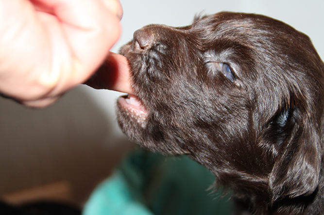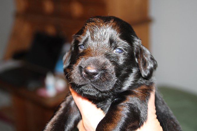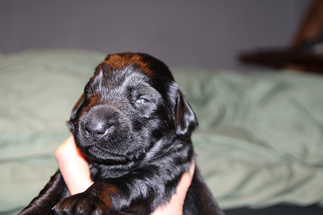 14.01.25. I dag er de skjønne diamantene blitt 3 uker allerede. Det er dags for en klo klipp ,vekt sjekk, Hmmm de er gode og runde så de har økt bra :-) ,og en mark kur som går over tre dager. den gruer jeg alltid for. Den kan være litt hard på magen men vi får håpe de sklir greit igjennom den. Viktig å få så de ikke blir syke :-) Kjell åpen valpekassen enda mer i går å de traver/vagger rundt :-) Her er jente hode og jente rygg