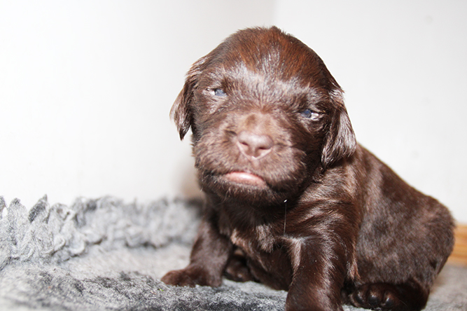 02.01.25. Nå er det to troll som glipper med øynene. De første dagene er det vanskelig å ta fine bilder av de små. De kniper fort igjen når det blitzer :-) Øynene er knall blå i starten før de etter hvert går over til en grå nyanse for til slutt å bli nøttebrune :-) Dessverre klarte de ikke å finne Mistie i går. De lette helt sykt masse og hva rover det meste i nærorådet.I dag er det nye folk som skal lete å vi håper virkelig hun blir funnet. Men etter som dagene går et kjangsen mindre og mindre for å finne henne i live i kulden. Jeg er så lei meg her hjemme. :-( Når vi får valper blir det knyttet bånd til hver og en ,å vi vil jo helst at de skal bli gamle fine hunder som får et langt og fint liv. Det er våres hjertebarn alle sammen ,så dette er så vondt .Som sagt er det ikke så lett å ta fine bilder av de små når det blitzer så kniper de øynene sammen :-) men her er jente høyrebak og Brun jente :-)
