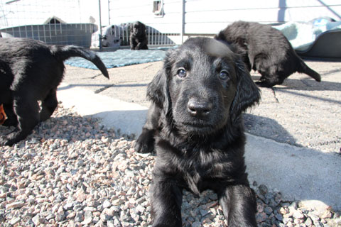 09.05.20. Nå er den store verden mer spennende en å være hos seg selv. de elsker å løpe fritt m,en er flinke til å komme når jeg blåser i fløyten. Alle får med seg en fløyte og en dummie til hver sin valp så man kan kose seg videre med treningen hjemme :-) Her er jente rumpe og gutt rumpe