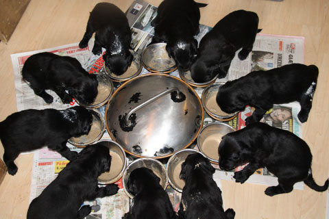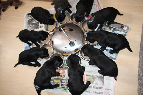 13.04.20. I dag klipper vi klør og starter på en tre dager s obligatorisk mark kur. som de skal ha ved 3 uker s alder. De kan få litt dålig mage av den men vi krysser finger for at det går fint. Grøt øver vi nå med to og tre av gangen på å spise pent ved siden av hverandre :-)Her er Gutt venstre foran og gutt hode