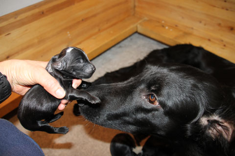 24.03.20 .Nå er klokken blitt 10.45 og fra kl 07.30 til nå har Norah født 3 tisper og 7 hanner. jammen har de kommet ut i rekord fart når hun først begynte å føde :-) Jeg er usikker på om det er flere men vi får se ann litt til før vi skifter teppe og dusjer Norah. Hun elsker alle sin små og er så fornøyd :-)