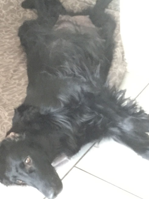 10.05.20. De var ikke fornøyde med regnet som begynte ved 2 tiden i natt. Vi var ute å luftet oss akkurat når det begynte så det var en kjapp tur. Men da måtte de ut en time senere igjen . Vi er bort skjemte her nå med døren åpen det meste av dagen . I dag blir det litt annerledes siden det regner . Vi får bruke stua som boltre plass Her er jente nakken og gutt nakken.