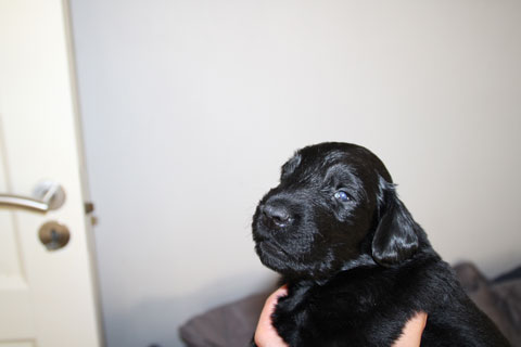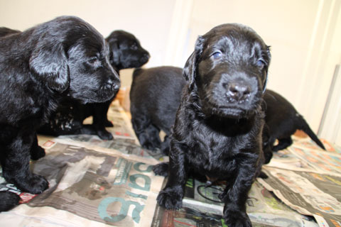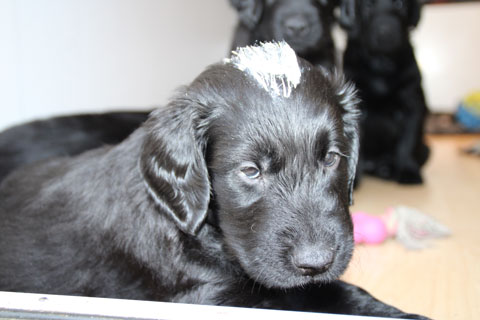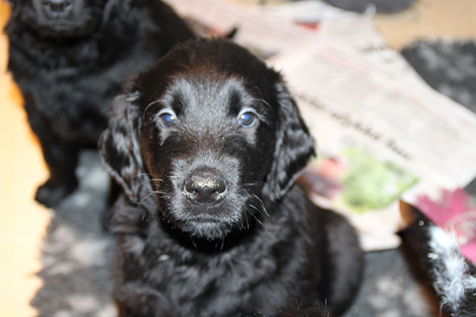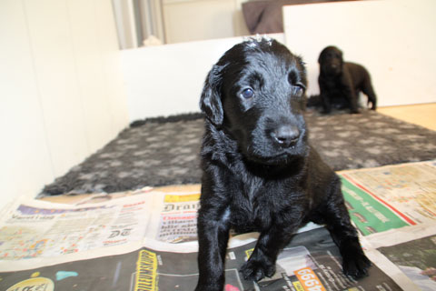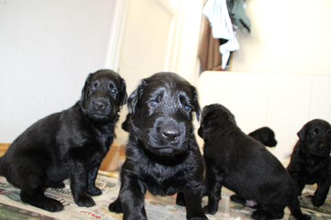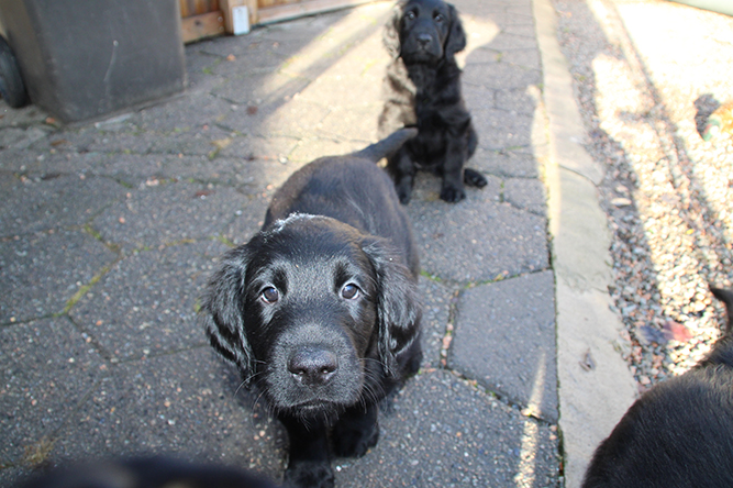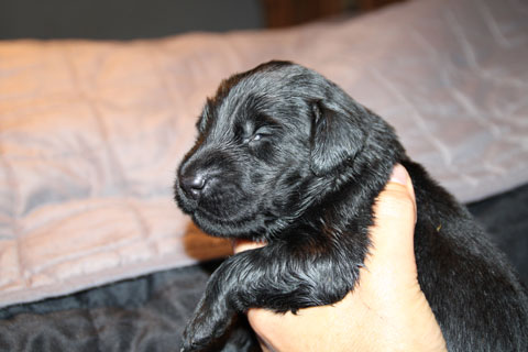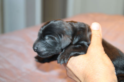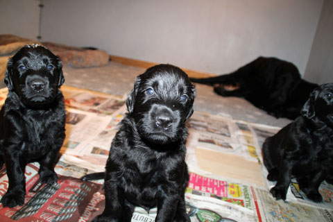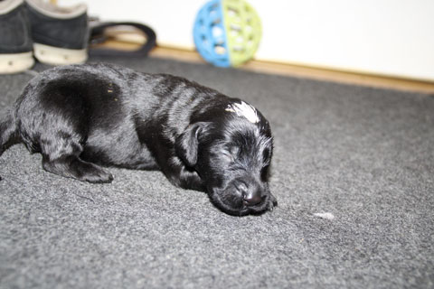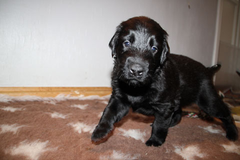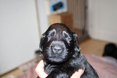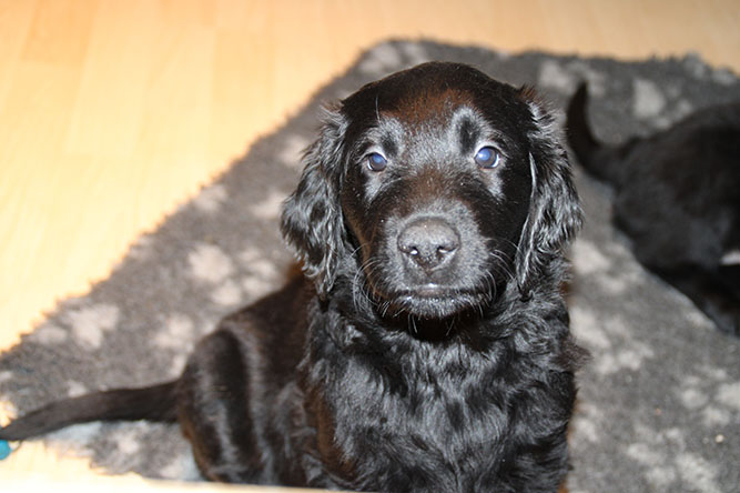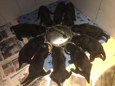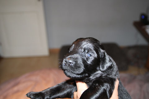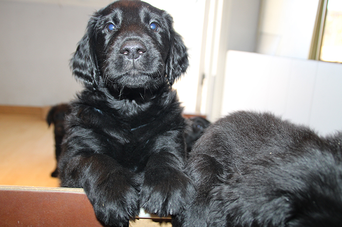 Kl 17.50 De to første valpene er kommet :-) 2 flotte sorte gutter :-) Emma er helt fantastisk med sine skjønne troll. Flere vil ut :-)