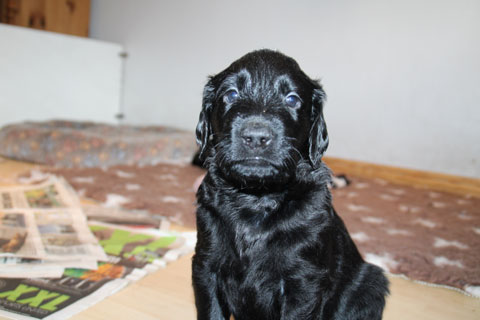 27.09.20 mat i tre omganger falt veldig i smak. Nå tror jeg faktisk jeg må åpne valpe kassen enda mer så de får større plass å bevege seg på her :-) I går gikk onkel Scott . Emma bror på jakt prøve og fikk en meget god 2 premie. :-) Kjempe gøy. Tror Emma gleder seg til hun kan jobbe igjen også. Hun byr villig frem ballen og lurer på om vi skal gå ut å gjøre noe når små trolla sover . Her er Guttnakke og jente halen.