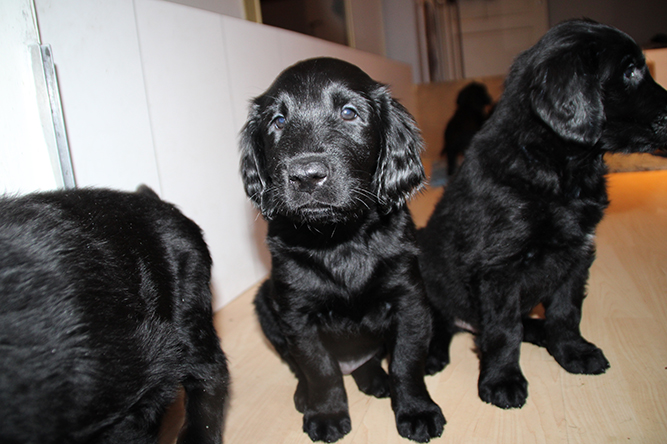 13.12 20. I dag er de skjønne Dansende blitt 4 uker. Ny runde med klo klipp og vekt sjekk :-)Vi klarte med gode rutiner å få til to koselige besøk i går. Trolla stor kosa seg med nye mennesker å kos :-) I dag skulle vi hatt et besøk her men det er avlyst så er det andre som skal ha valp som har lyst å komme i dag så er det bare å ringe :-) Kalenderen er så full her at vi utnytter hvert lille ledige hull :-) Her er jente rumpe og gutt rumpe og alle i mat fatet :-)