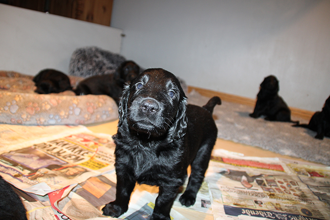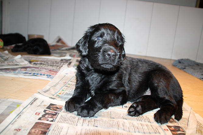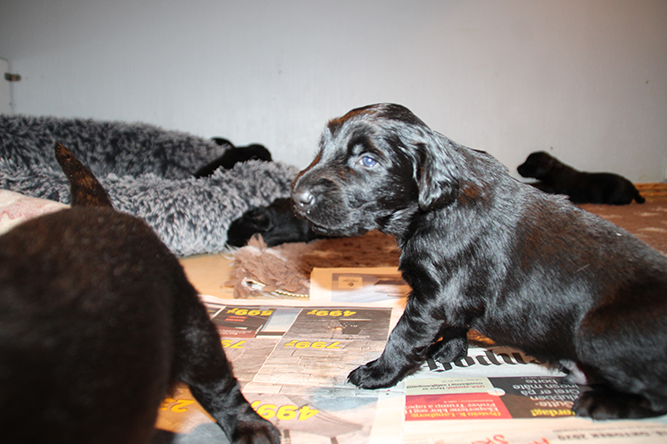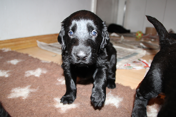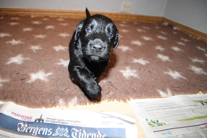 29.11.20 Det var deilig med større plass. Allora satte også pris på det. Så er det nå å lære å gå ut på avisene for å tisse å bæsje. De vakler seg over nå men glemmer litt at bakrkroppen også må være med og at man må vente med å tisse til hele kroppen er ute av teppet :-) Men det kommer :-) Her er alle så er det jente merket halen og gutt merket halen.