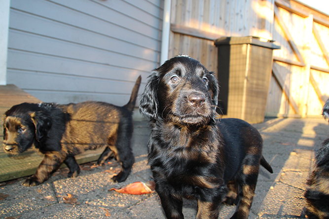 30.12.20. I dag er det Kjell som holder hus hjemme mens jeg jobber :-) Besøk blir det i dag også på trolla våres. De elsker nå å gå tur i den store verden :-) De kommer fløyten når vi piper så de er flinke på innkalling nå. Nå må vi heve skille veggen vi har satt videre ut i huset for de klatrer over. I natt har jeg måtte opp 3 ganger for å løfte valper tilbake der de skal være. Her er JFF/Zara og GHB/Odin