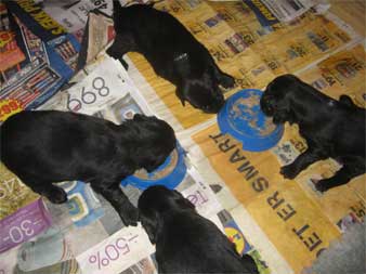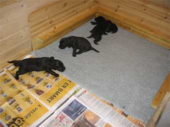 29.12.05. I natt mistet vi den ene gutten av kolikk dessverre. Det var kjempe trist. Men de andre ser ut til å ha det bra. De vokser og trives. Alana er i god form nå. Hun tigger mat så fort hun har kjangsen.