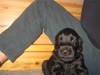 29.01.06. I dag har vi hatt valpetreff for amerikaner gjengen. Da falt det litt kos på små trollene også. Gøy med nye mennesker å bite på. :-) Her er gutt nakke og jente rumpe.