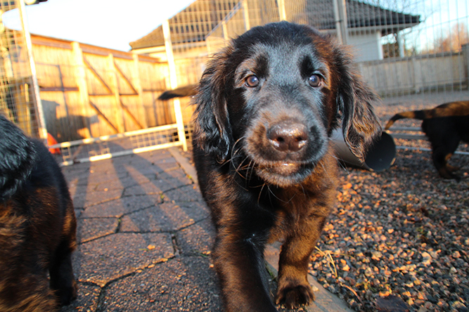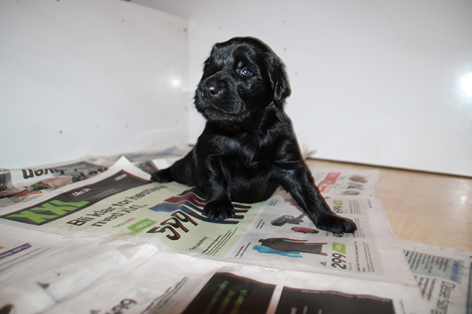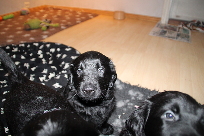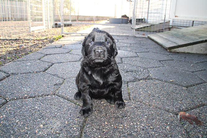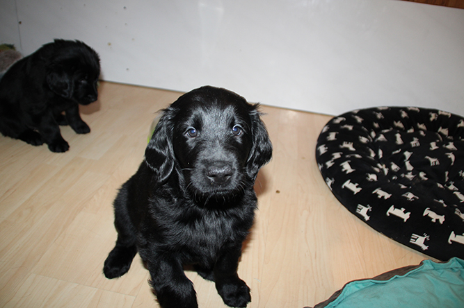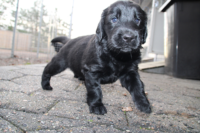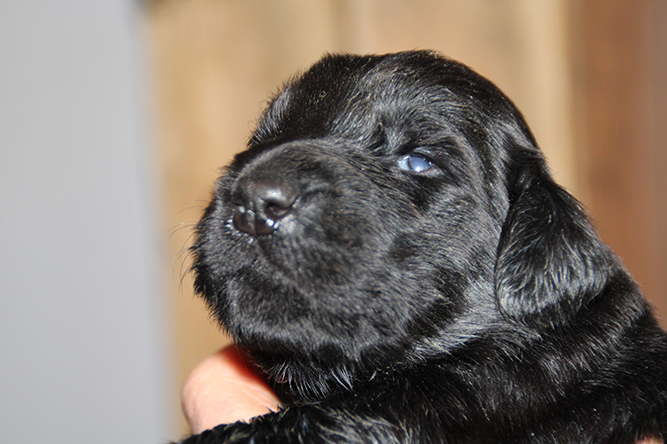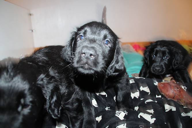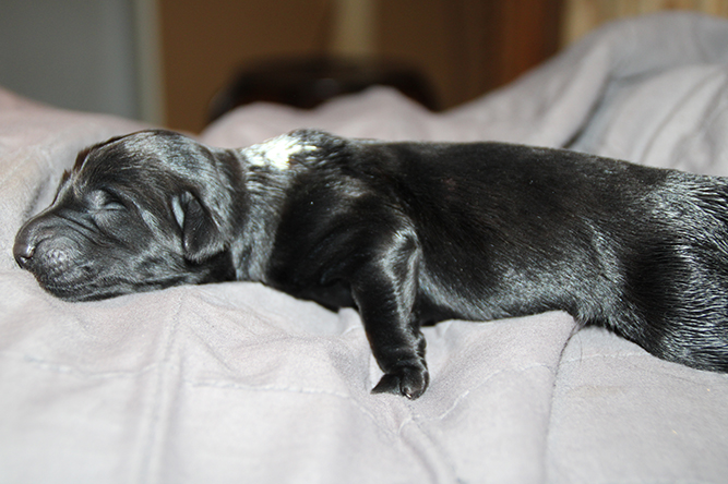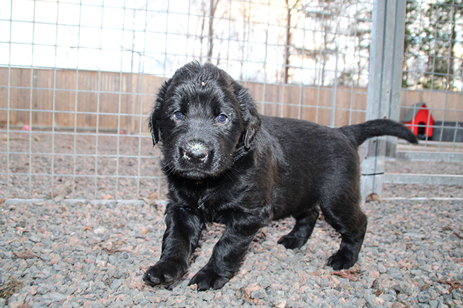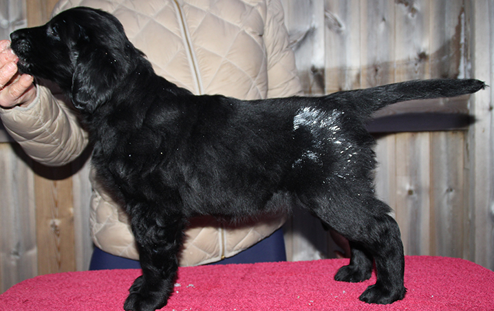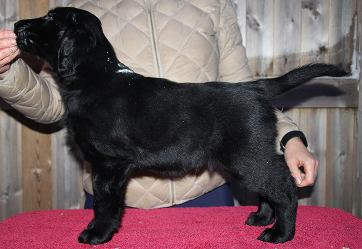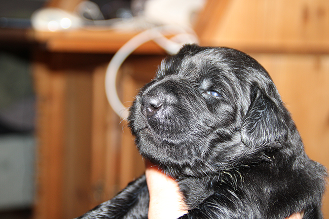 28.10.21. Det er fart i de små sorte gullende når de våkner nå. De åler seg fort gjennom valpekassen på leting etter puppen og melken :-) Ikke alltid like lett å få lagt seg Mille står noen ganger å ser litt fortvilet ned på haugen med skjønneste som åler rundt å funderer tydelig på hvor skal jeg legge meg fort ned så jeg ikke ligger på noen . :-) Hun er kjempe flink :-) Her er jente merket på rumpen og gutt merket på rumpen