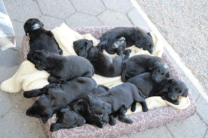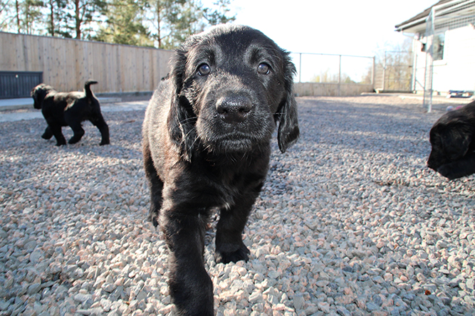 26.04.22. masse kos å lek ute i det flotte været som heldigvis kom tilbake igjen i går :-) De elsker å løpe i den store verden sammen med de store hundene. Vær obs på at valpene er utrolig trygge å tror at alle er like snille når dere får de med hjem. Pass på at de ikke kommer borti sure hunder som gir de en smell. Her er alle snille med de å de tror jo at slik er det overalt .Kimmie elsker å leke med de små Hun legger seg ned å lar de bite klatre rundt på hele seg. Hun snakker til de men er veldig mild når de biter for hardt. Elisabeth fra Agria her nå begynt å ringe rundt for å tegne forsikringen på hver og en Hun ringer til alle så dere får en tlf i løpet av denne uken :-)Hun har fått alle data på valpene med reg nr og alt hun trenger .Forsikre valpen deres med den beste forsikringen Mye kan skje med et uvørent lite kryp som aldri er der man tror den er. Veterinær er kjempe dyrt å 20000 kr forsvinner veldig fort. Vi har alle forsikret for 60000 kr i året og full dekning. Man får 10 % avslag på forsikringen når man er medlem i Norsk kennel klubb. Det er man når man automatisk er medlem i Norsk retriever klubb :-)Her er Saga og Koda.så er det alle ute i den deilig ute sengen de har når det er godt å varmt .