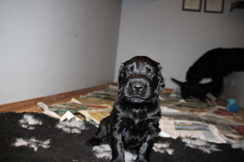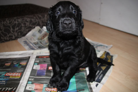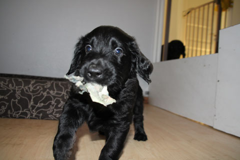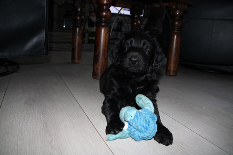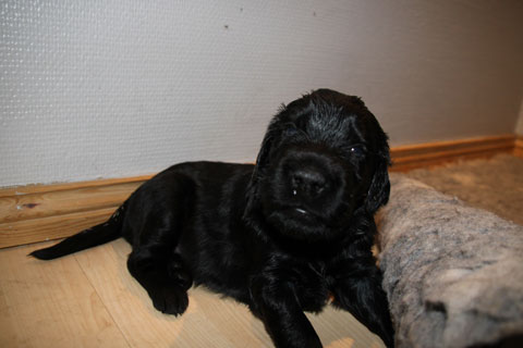 19.12.19. I går reiste Bonzo Balto og Frida. Tilbake meldingene var supre i går kveld. Alle tre fikset turen hjem godt å gjorde seg kjent i sin nye verden. Atlas skjønte ingen ting her på kvelden. Hvor hadde alle gjemt seg hen? Det var godt å ha både mamma Giga og fetter Link å trøste seg med da. Atlas har sovet godt i natt ,var ute å tisset kl 3 for så å sove frem til kl 5 nå hvor vi starter dagen. Nå var det ny runde med å lete etter søksnene. Men etter en tur hvor han tisset og bæsjet og så fikk maten sin så ligger han nå å koser seg med et grise øre.De store er skogen en tur :-)I dag kommer hans familie også å henter han så da får han også oppleve den store verden :-)Det skal bli bra. Jeg har det ikke bra nå når de reiser :-) Skjønner jo godt at det er riktig men du som jeg savner de :-) Her er Atlas og dette er den siste dagen med valpe dagboken Zøkende. Vemodig men gjett om jeg gleder meg til valpe kurs her på mandager for de som kommer der og til første valpetreffet som er 19 januar :-)