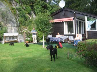 Etter dette var det tid for hvile av hodet for både to- og firbente. Så da var det pølse grilling og kakespising oppe på hytta. Etter dette så gikk vi igjennom helse stell og klipp av flatten. En nydelig dag sammen med flotte folk og hunder. En spesiell takk til Kira med familie som tok seg tid til å kjøre helt fra Bergen for å dele denne dagen med oss.
