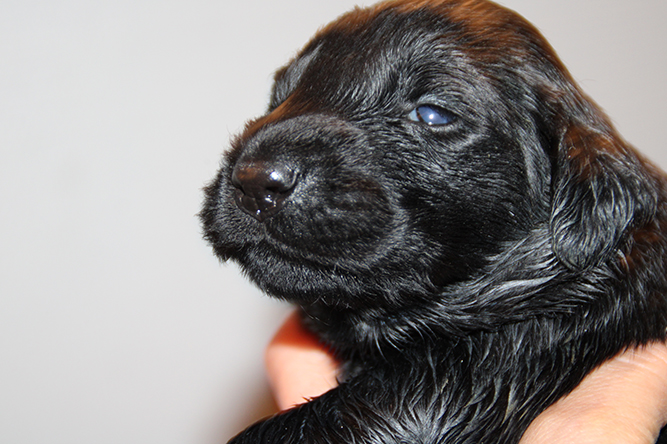 30.09.25. I dag er de skjønne tre døgn gamle. De vokser og trives.Det er mer fart i de når de våkner å skal ha melk. Hvis ikke Kimmie er kjapp til å legge seg så yrer det rundt henne. Noe hun tar med stor ro. Hun vet akkurat hvor hver og en er å legger seg ned der det er ledig plass å aker seg inntil valpene sine. Vi var ute å gikk en litt lenger tur også i går kveld. Kimmie stor kosa seg og var også veldig fornøyd når vi kom inn igjen. :-) Da ble hver å en vasket godt . Her er jente merket rygg og gutt merket halen