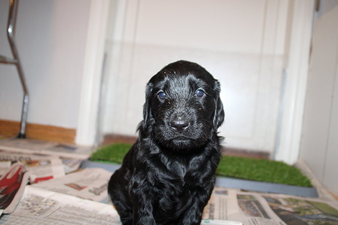 25.02.26. Tenk i dag er de skjønne sorte gullene våres blitt 2 uker gamle. Vi åpnet opp valpekassen så de fikk større plass i går. Nytt teppe var også deilig :-) Luna har virkelig strukket seg å kost seg i natt sammen med bebisene sine . Det var vel trangt nå. Vi har en liten del med aviser og i løpet av de neste dagene nå vil de begynne å trekke vekk fra der de sover for å tisse og bæsje. det er en naturlig renslighet som er viktig å ta vare på. Å la de ha plass til å komme seg ut for å gjøre i fra seg :-) I dag er det klo klipp på hele gjenget igjen. vekten øker så det suser . I dag skal de få smake sin første beby valpemat. Royal canin starter mouse. Det pleier å bli veldig populært . Her er JN og Gn